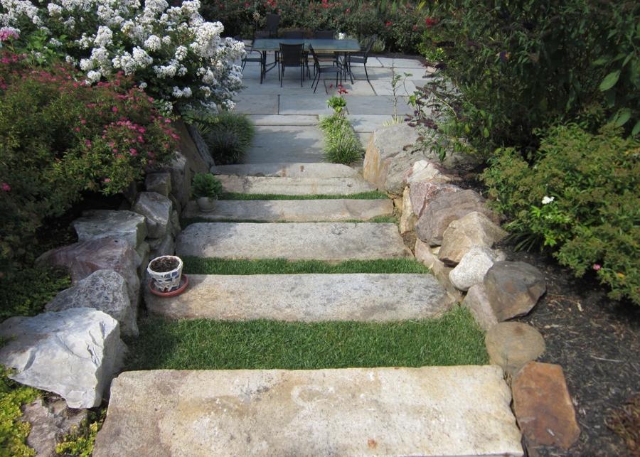 bluestone treads, heavy tread bluestone, irregular heel-toed steppers, natural snapped fieldstone heavy treads